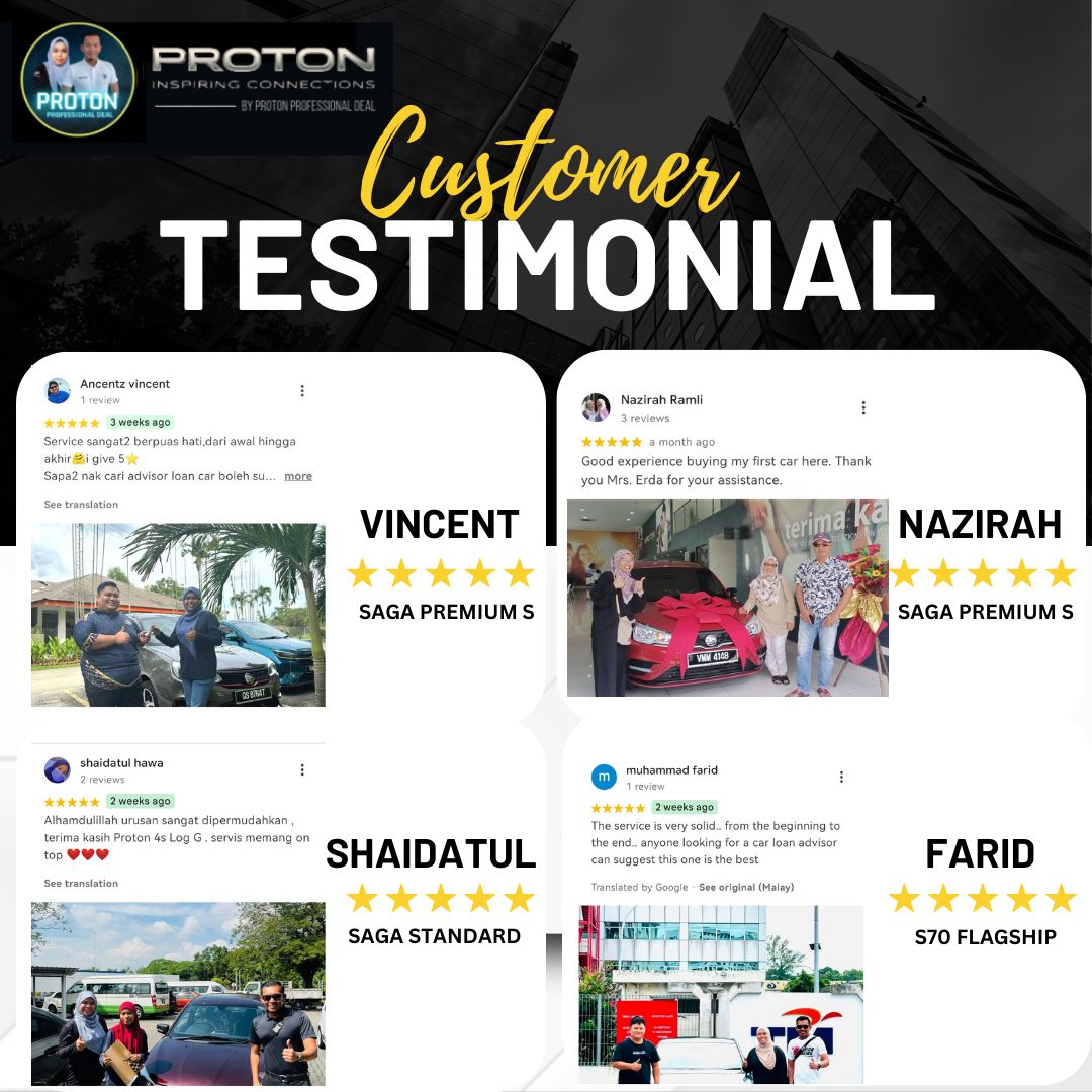 Saya memang syorkan beli kereta dengan proton professional deal. Memang terbaik! InsyaAllah akn guna semula servis.